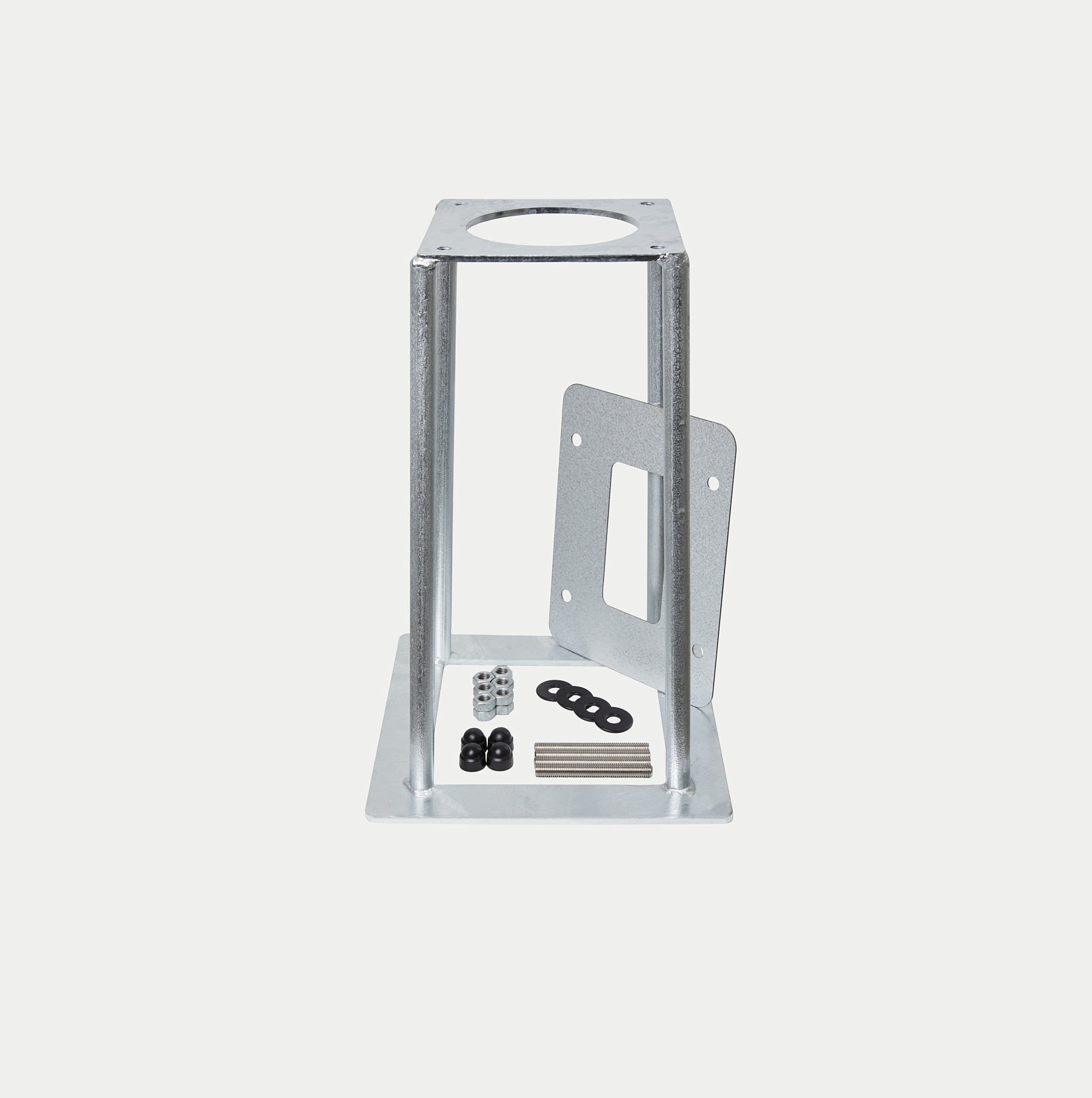 Leveres komplett med pinnbolter, skiver, muttere og mutterhetter, slik at ladestolpen kan monteres sikkert og korrekt uten behov for ekstra tilbehør.